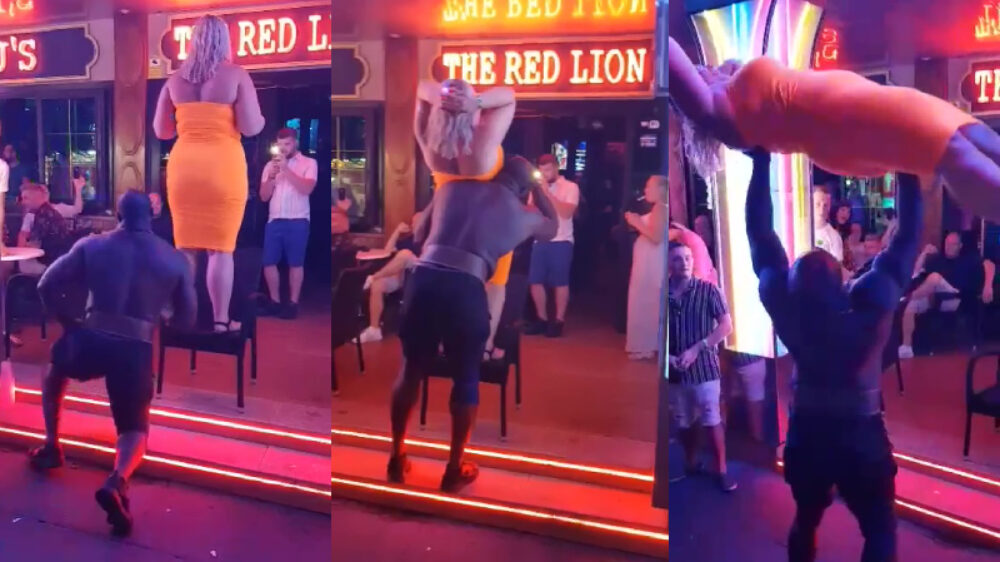 Als je geen sportschool in de buurt hebt voldoet een flinke dame ook prima