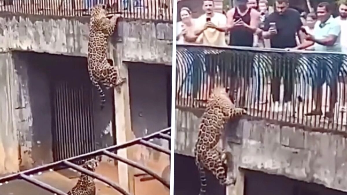 Als je een dierentuin bezoekt dan gebeurt het niet heel vaak dat je getuige bent van een jaguar die via een betonnen paal probeert te ontsnappen. Deze bezoekers waarschijnlijk ook niet, dus bedachten ze zich geen moment en gingen er in volle vaart vandoor om niet levend opgegeten te worden pakten hun telefoons erbij om een vette video te maken.