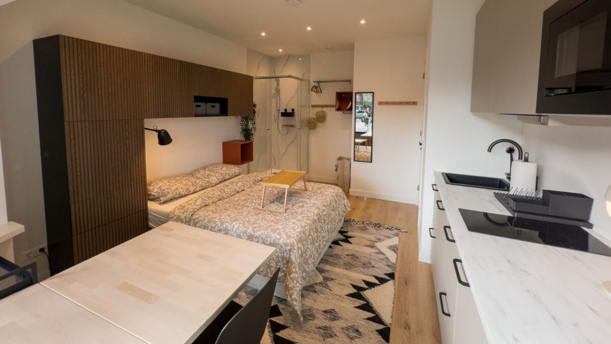 In dit € 175.000,- kostende appartement in Utrecht kun je koken vanuit je bed!