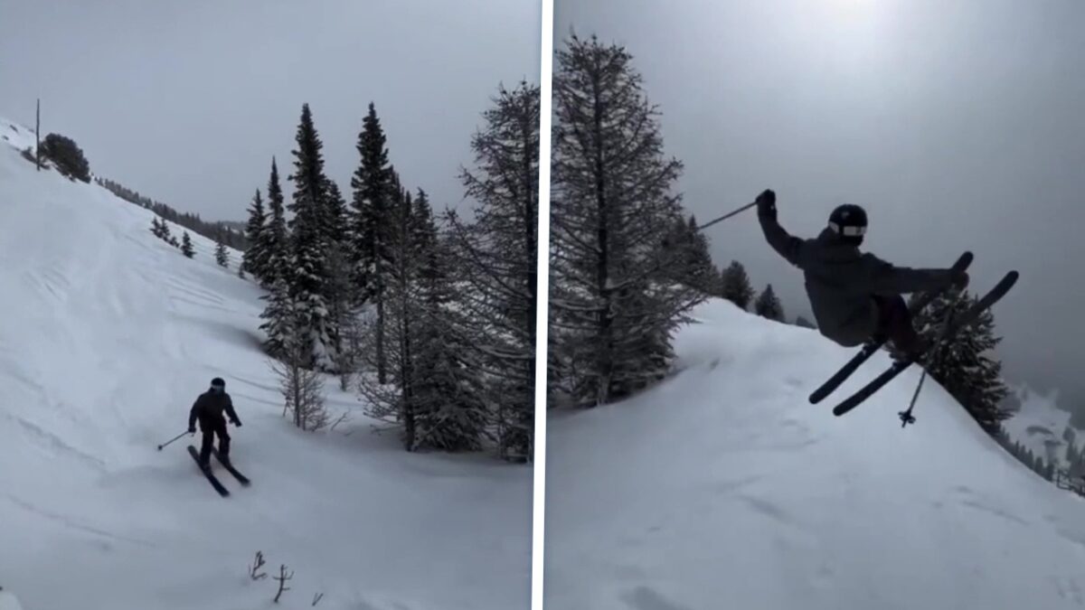 Skiër maakt geweldige sprong met verschrikkelijk slechte timing