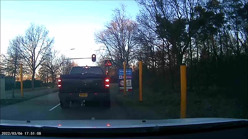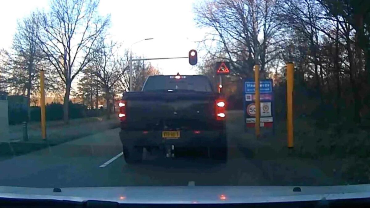 Pickup in Maarheeze heeft blijkbaar ontzettende haast en scheurt door rood