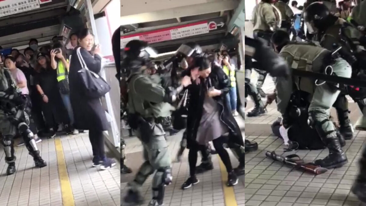 Dat het al een tijdje een flink zootje is in Hong Kong wisten we al, en zelfs zwangere vrouwen zijn daar niet meer veilig. Eerlijk is eerlijk, we weten niet wat zich hiervoor heeft afgespeeld, maar een zwangere vrouw eerst twee keer peppersprayen en daarna hardhandig naar de grond werken? Doe effe normaal.