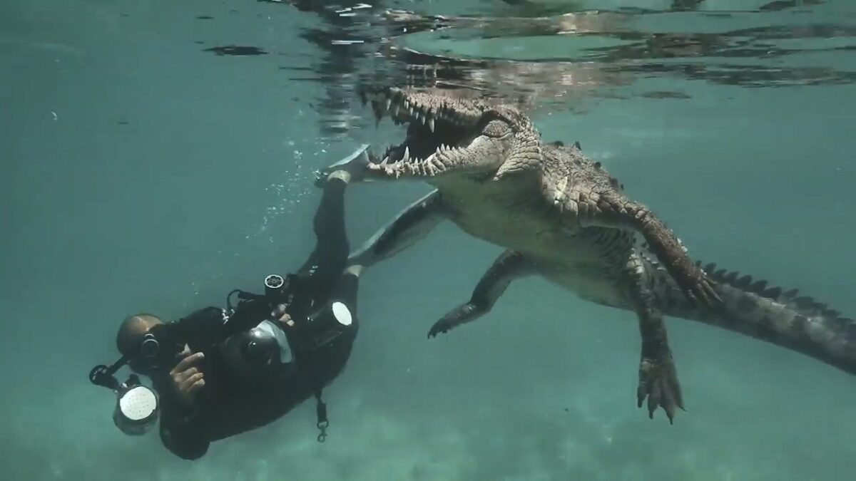 Waaghalzen poedelen doodleuk met een levensgevaarlijke zoutwaterkrokodil