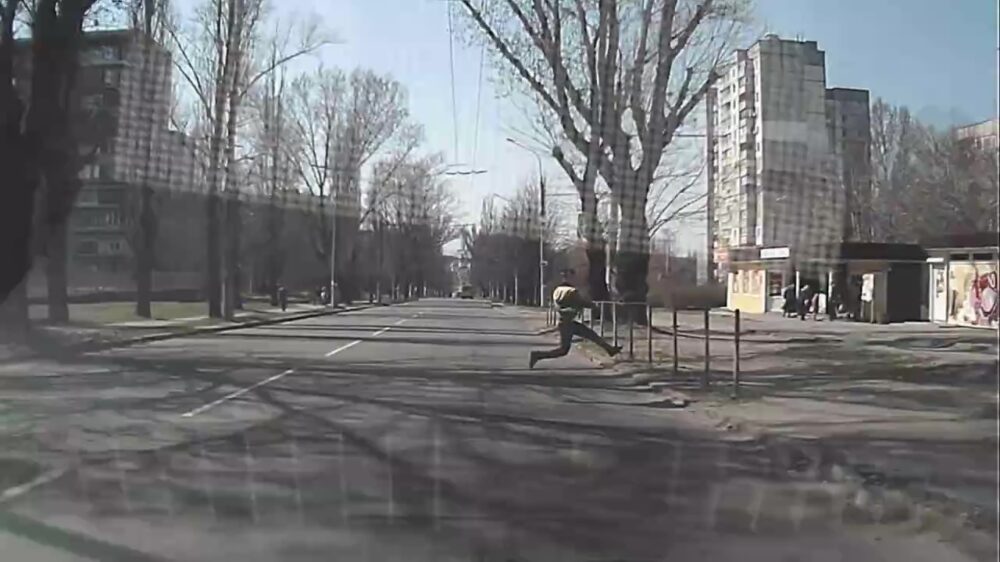 Overstekende kerel is veilig aan de overka... Oh wacht