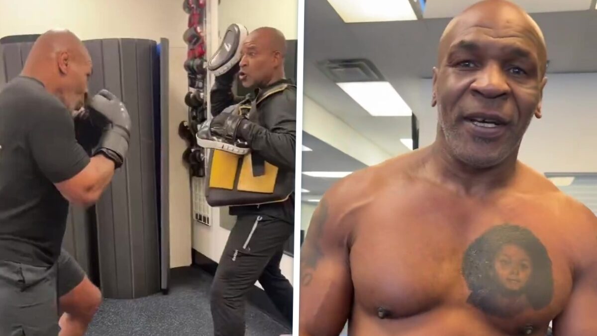 Mike Tyson (57) al keihard in training voor de wedstrijd tegen Jake Paul