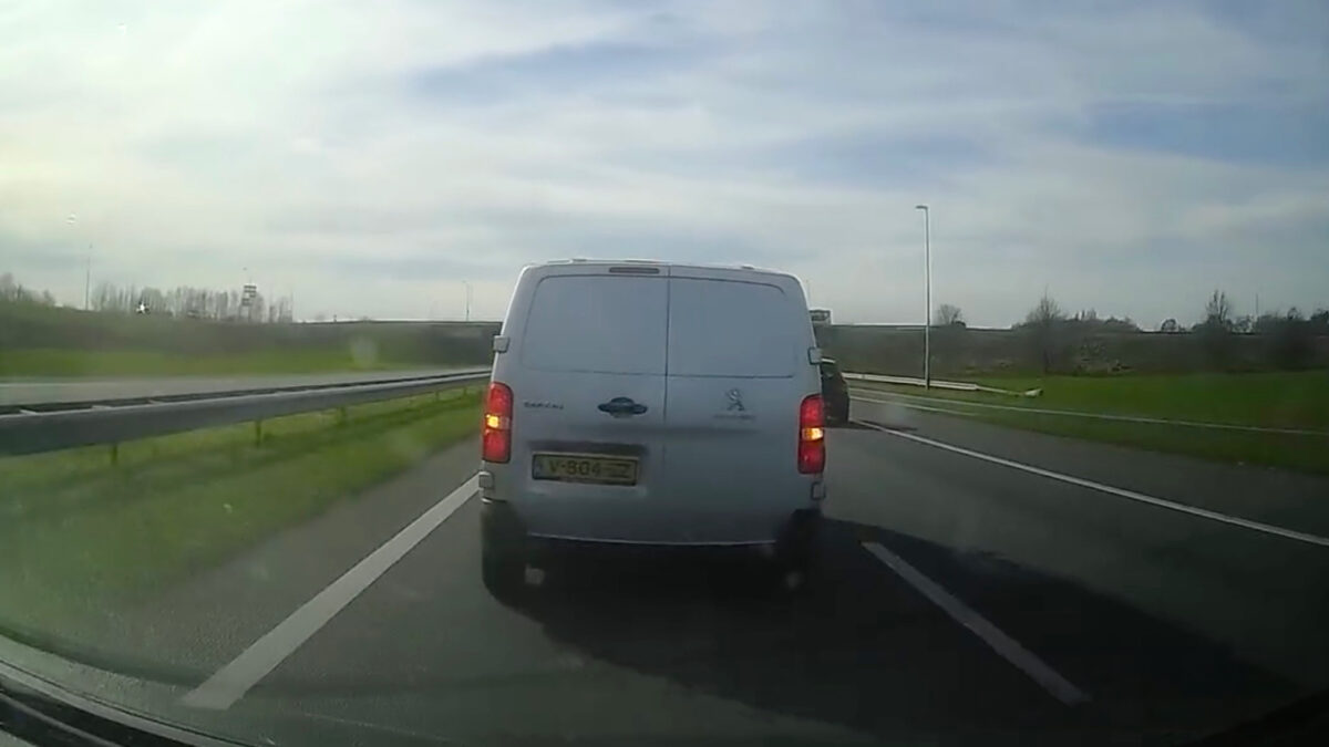 Automobilist ziet hardrijder aankomen en gooit z'n busje er rustig voor