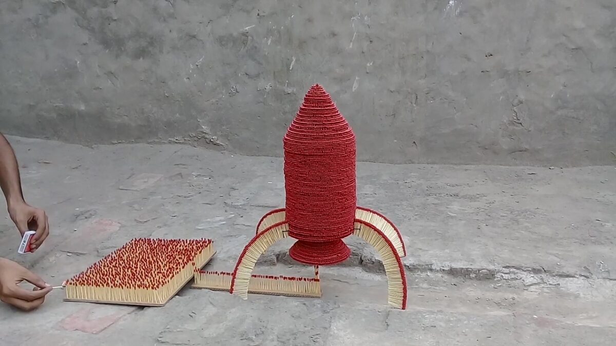 Met 100.000 lucifers kun je prima een dikke ruimteraket bouwen Random