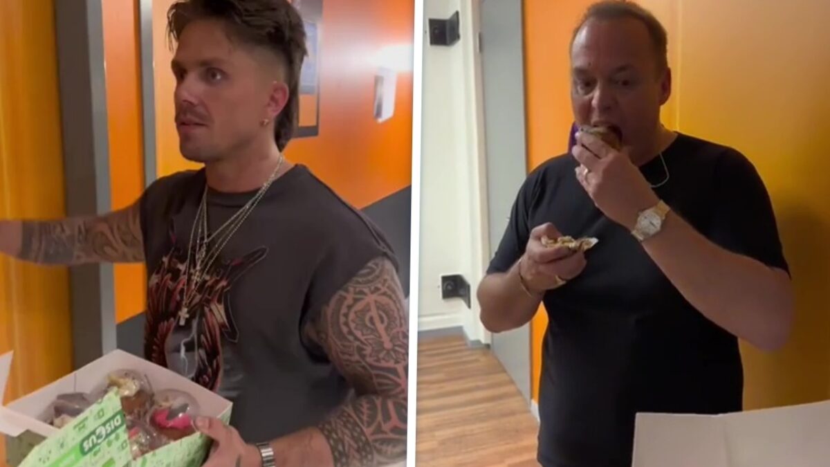 En wij maar denken dat die André Hazes Jr. geen humor heeft hè, maar dan ineens slaat 'ie je met deze prank om de oren! Hij gaf namelijk een paar cupcakes aan Frans Bauer, die tijdens zijn dieet gulzig toehapt want eerlijk is eerlijk: die gebakjes zien er prima uit. Wat blijkt? Het waren hondencakejes! Nou, wij gaan ons even verschonen en bijkomen. Tjeempie.