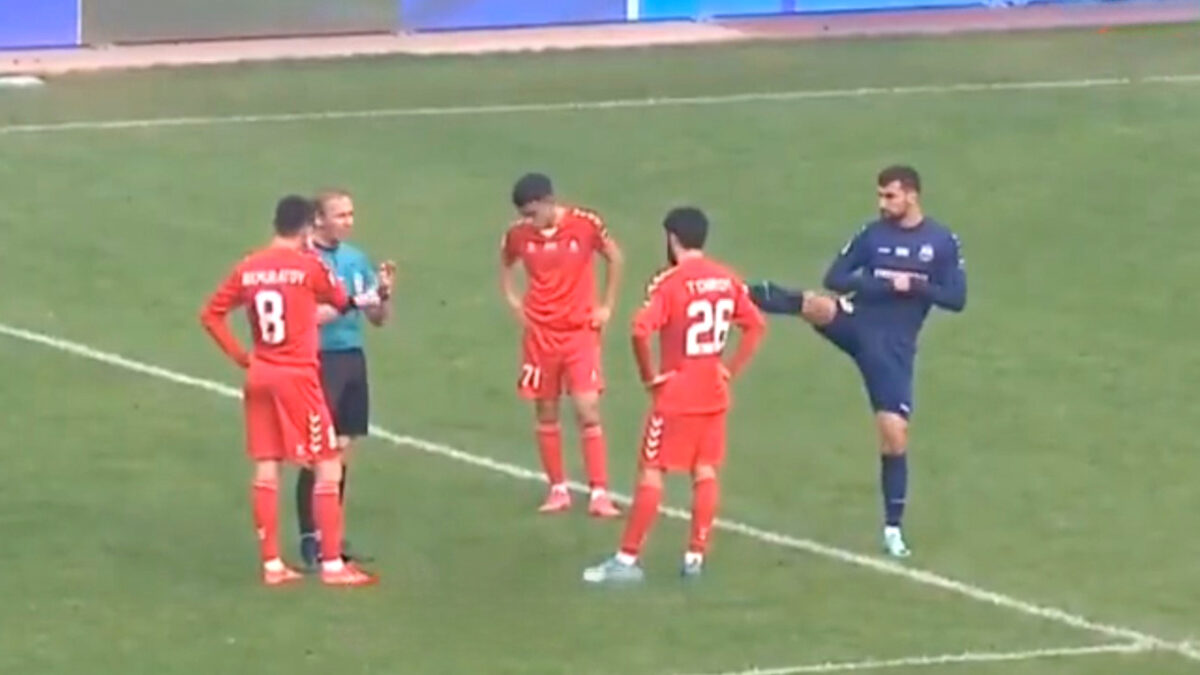Tijdens een voetbalwedstrijd in Oezbekistan krijgt een speler een trap(je) van een tegenstander. Zijn teamgenoot helpt hem even herinneren dat hij wel als een stervende zwaan naar de grond moet, maar aangezien de scheidsrechter al besloten had om de speler met een rode kaart van het veld te sturen, wordt zijn toneelstukje nog wat treuriger.