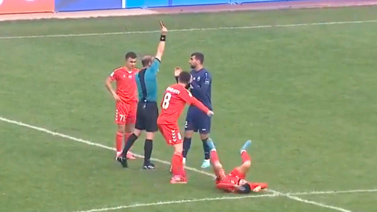 Tijdens een voetbalwedstrijd in Oezbekistan krijgt een speler een trap(je) van een tegenstander. Zijn teamgenoot helpt hem even herinneren dat hij wel als een stervende zwaan naar de grond moet, maar aangezien de scheidsrechter al besloten had om de speler met een rode kaart van het veld te sturen, wordt zijn toneelstukje nog wat treuriger.