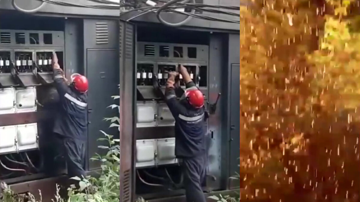We weten het niet zeker, wij zijn ook maar beunhazen, maar als we moeten gokken: kortsluiting. De man heeft het voorval naar verluidt overleefd.