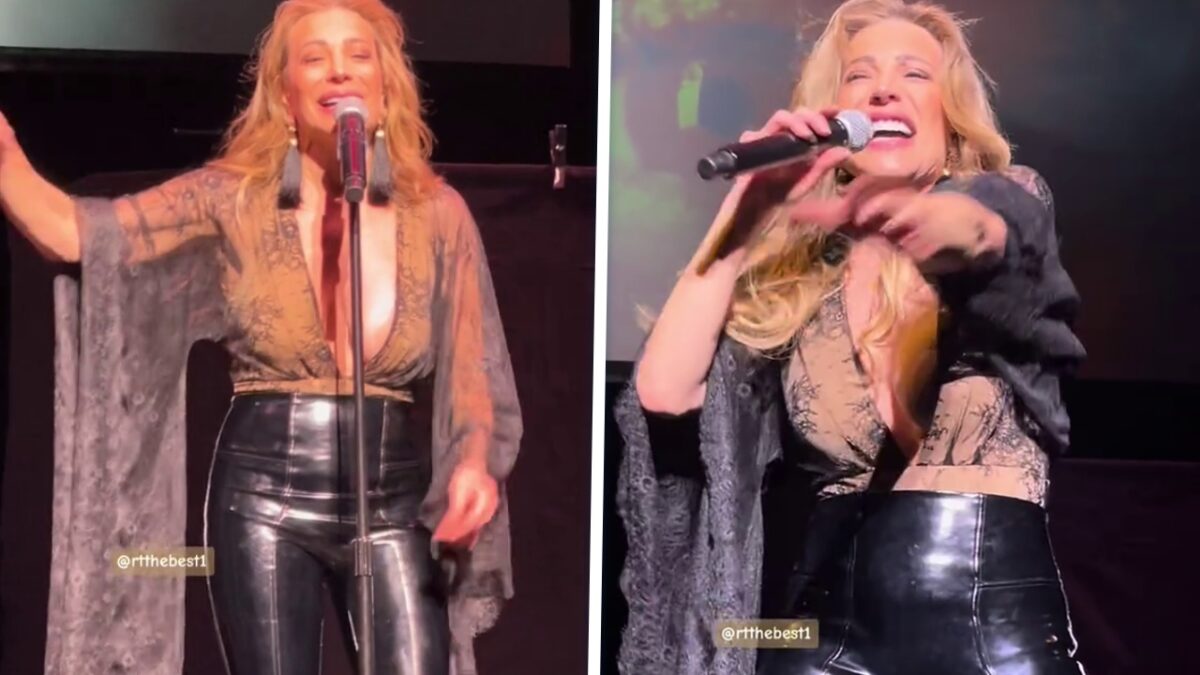 Zangeres Taylor Dayne heeft tijdens haar optreden wel érg veel vertrouwen in haar outfit