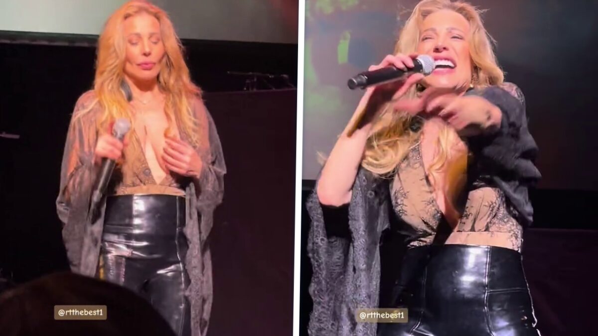 Zangeres Taylor Dayne heeft tijdens haar optreden wel érg veel vertrouwen in haar outfit