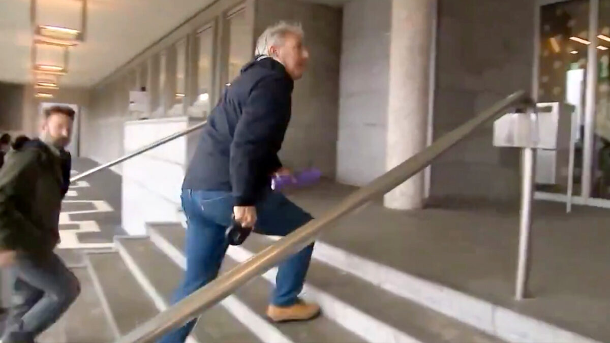 Gisteren ging het bericht al rond dat Pegida-voorman Edwin Wagensveld was aangehouden in het Paleis van Justitie in Arnhem toen hij tegen zijn eerder opgelegde gebiedsverbod demonstreerde, maar nu zijn ook de beelden opgedoken.