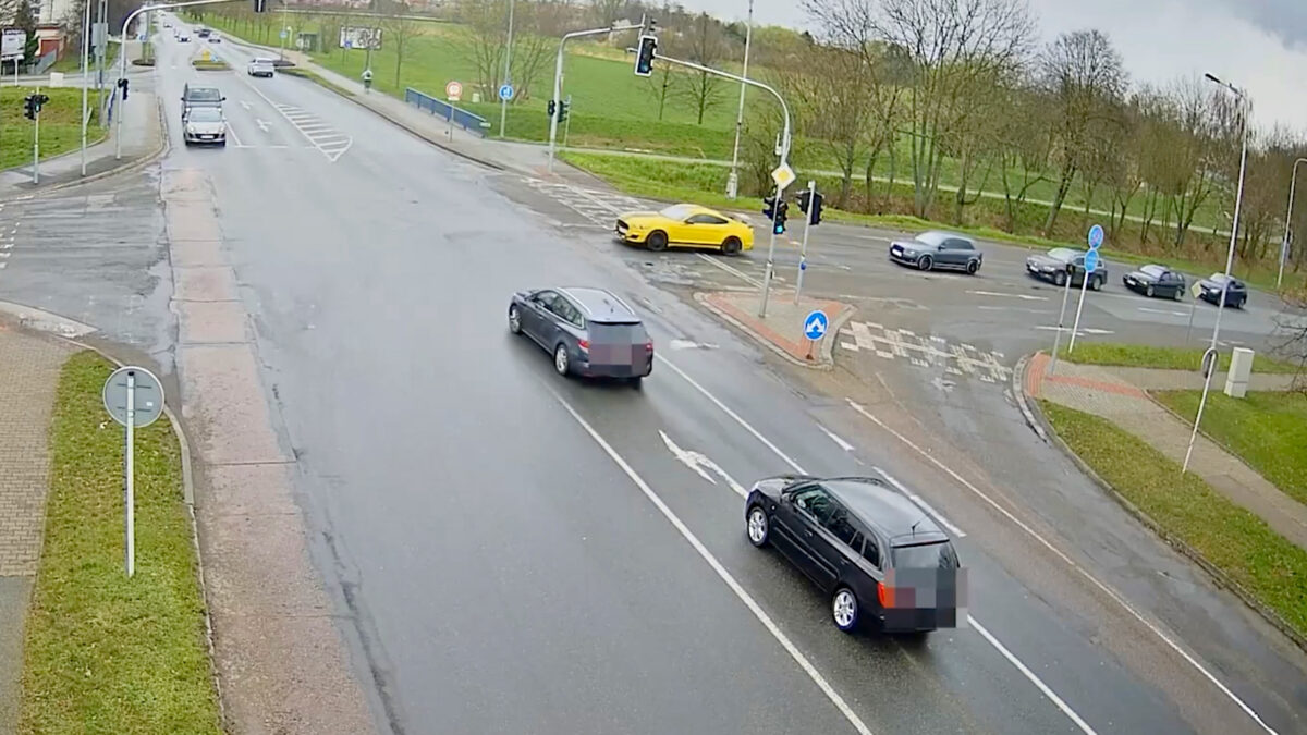 De bestuurder van een kanariegele Ford Mustang dacht afgelopen zondag in de Tsjechische stad Hradec Králové even sportief door een bocht te driften, maar dat viel in de praktijk toch enigszins tegen.