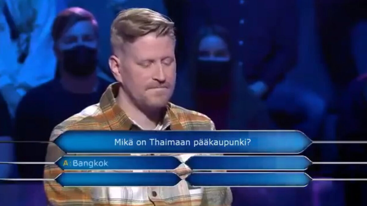 Iedereen die wel eens Weekend Miljonairs heeft gekeken weet dat de eerste paar vragen retesimpel zijn. Zelfs al weet je het antwoord niet, dan nog kun je de vraag goed beantwoorden door de vaak belachelijke foute antwoorden weg te strepen. Het programma wordt ook in Finland uitgezonden, en daar heeft de redactie gegarandeerd de grootste lol gehad met het verzinnen van deze foute antwoorden op de vraag "Wat is de hoofdstad van Thailand".