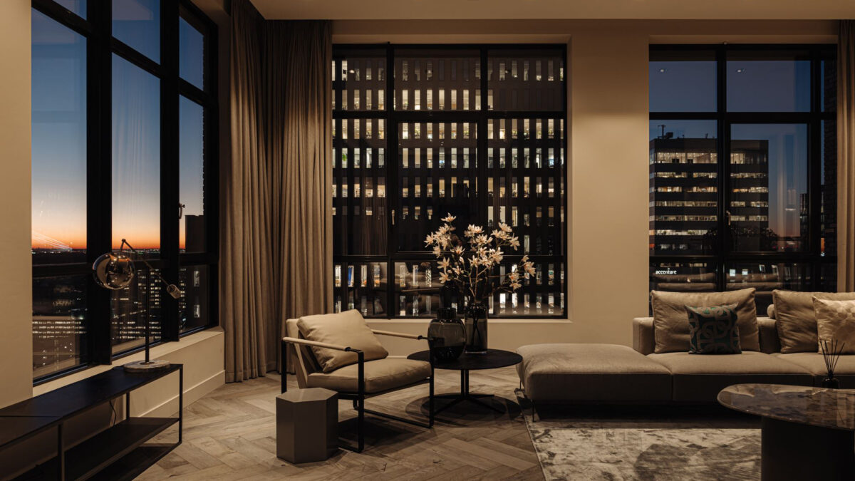 Wat heeft dit penthouse op de 21e verdieping, met een woonoppervlakte van 320 m², eigenlijk allemaal te bieden? Nou, naast een heerlijk uitzicht dankzij de grote ramen, zijn er 3 slaapkamers, 2 badkamers plus een relaxte lounge met een terras waarop je jacuzzi staat te wachten. Daarnaast is er nog een keuken met kookeiland en niet te vergeten, vloerverwarming én -koeling zodat het hele jaar door lekker aangenaam is.