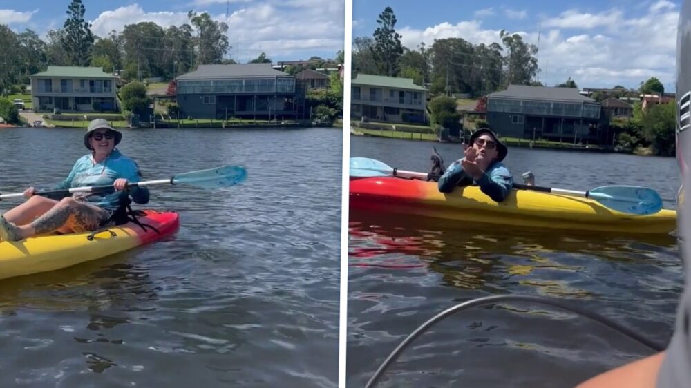 Australische kajak-Karen is pissig op bestuurder van bootje en schiet uit haar slof Virals