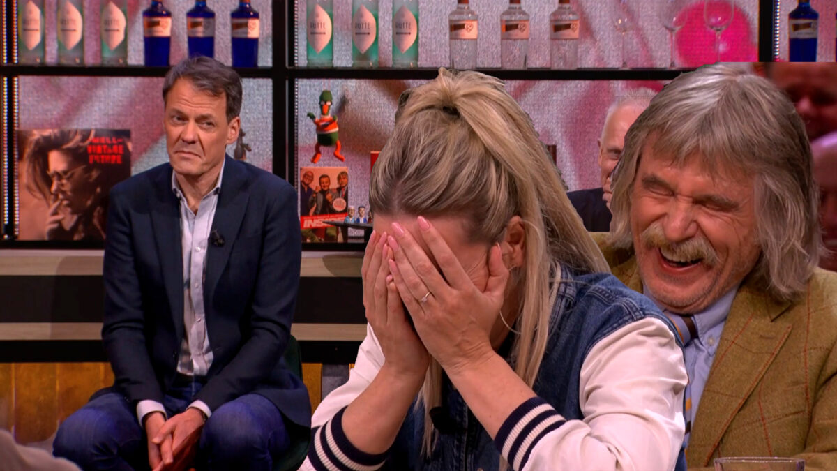 EO-presentator Tijs van den Brink met mond vol tanden na ordinair verhaal Johan Derksen