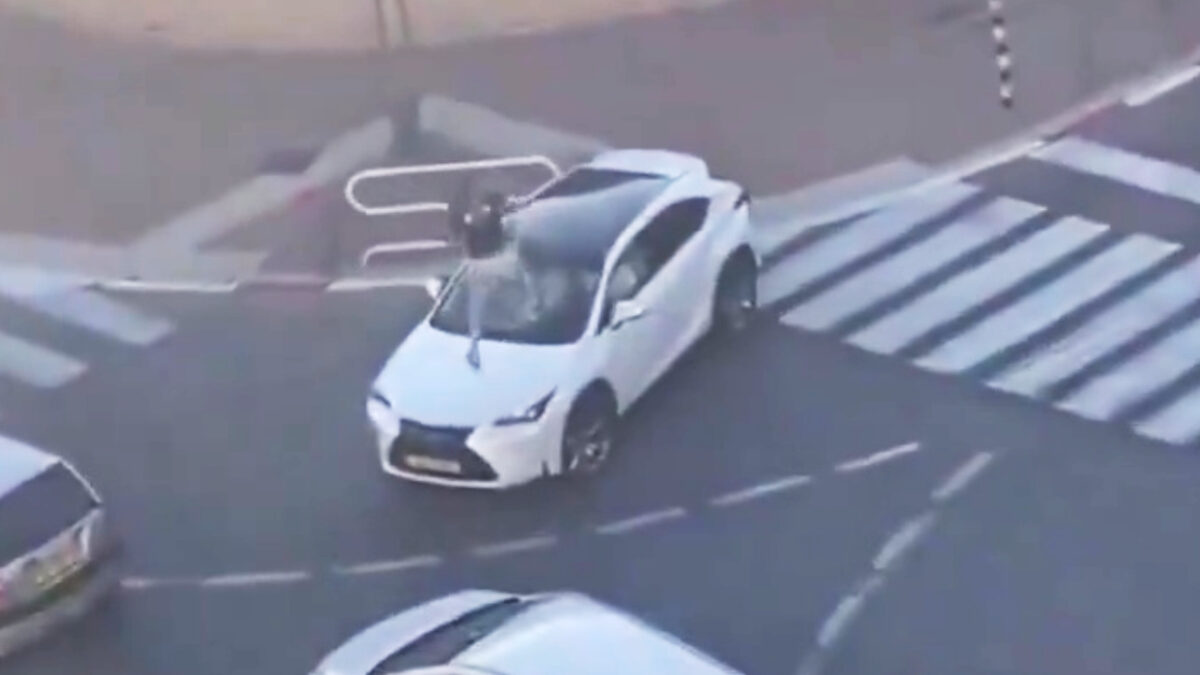 Agressieve road rager springt vanuit het niets bij een ander op de voorruit