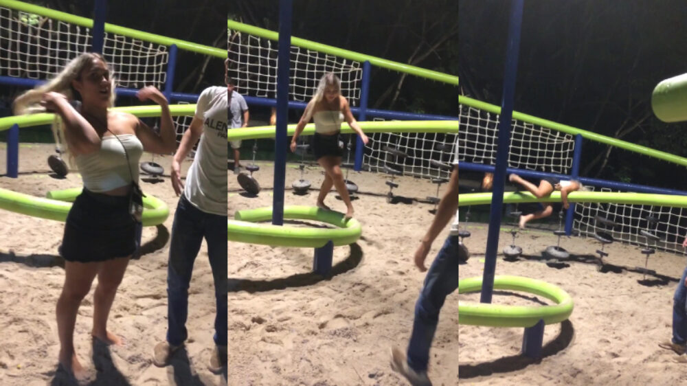Lijkt zo makkelijk hè, een wandeling over een smalle buis of balk, maar verlies een halve seconde je evenwicht en je hebt knap dikke lippen. Waar die ook mogen zitten.