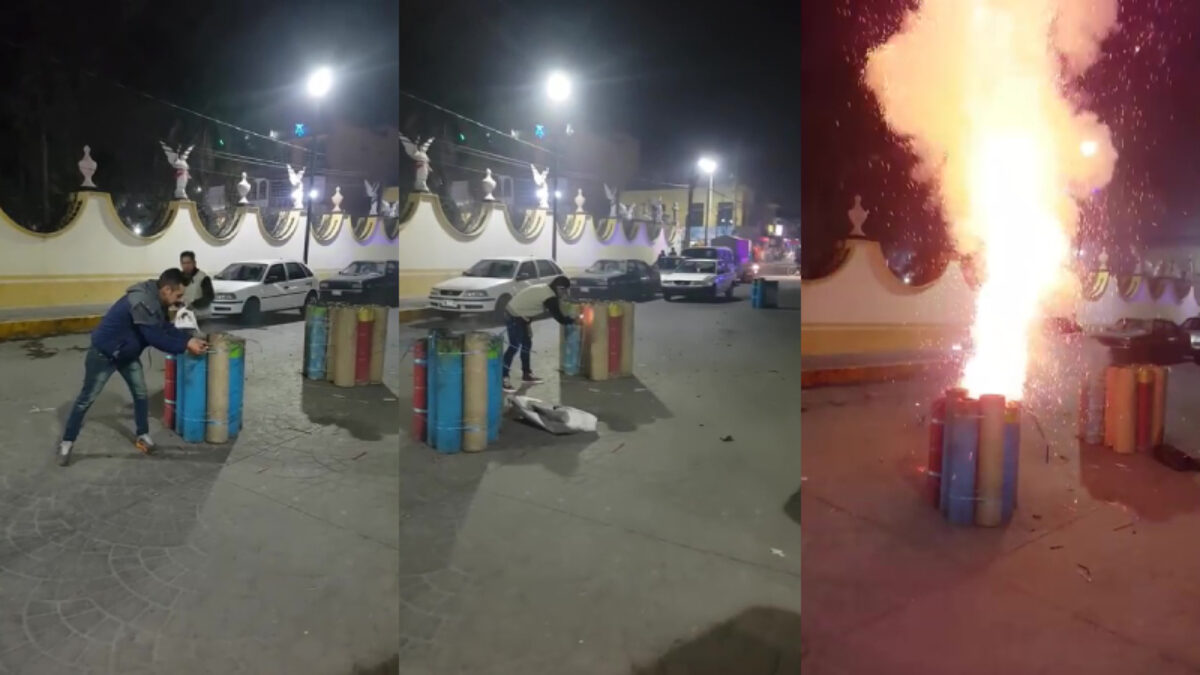 Mexicaanse vuurwerkshow op straat gaat niet geheel zoals gepland