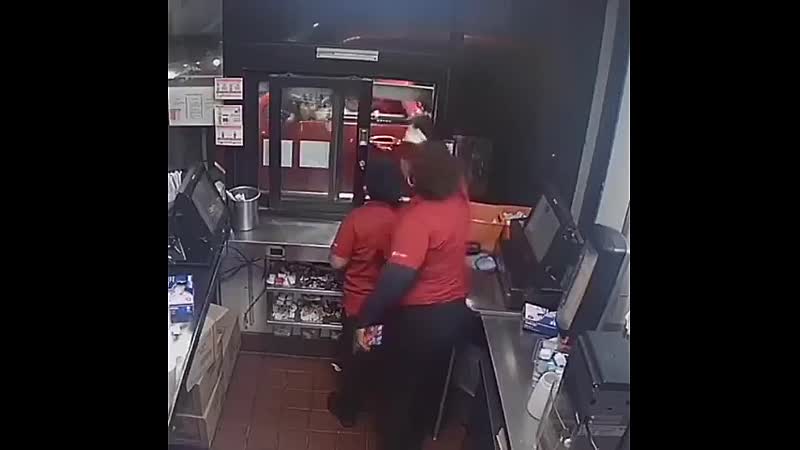 We zien met enige regelmaat opstootjes bij het raam van een of andere fastfoodketen, maar dat een medewerker er zo klaar mee is dat ze een wapen pakt en op de klant schiet is wel een (bizar) unicum.