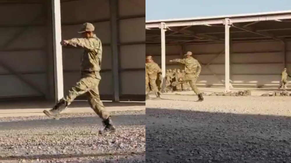 Dat valt ook nog lang niet mee, dat marcheren. Geen zorgen knul, dat wordt er de komende maanden nog wel ingedrild.