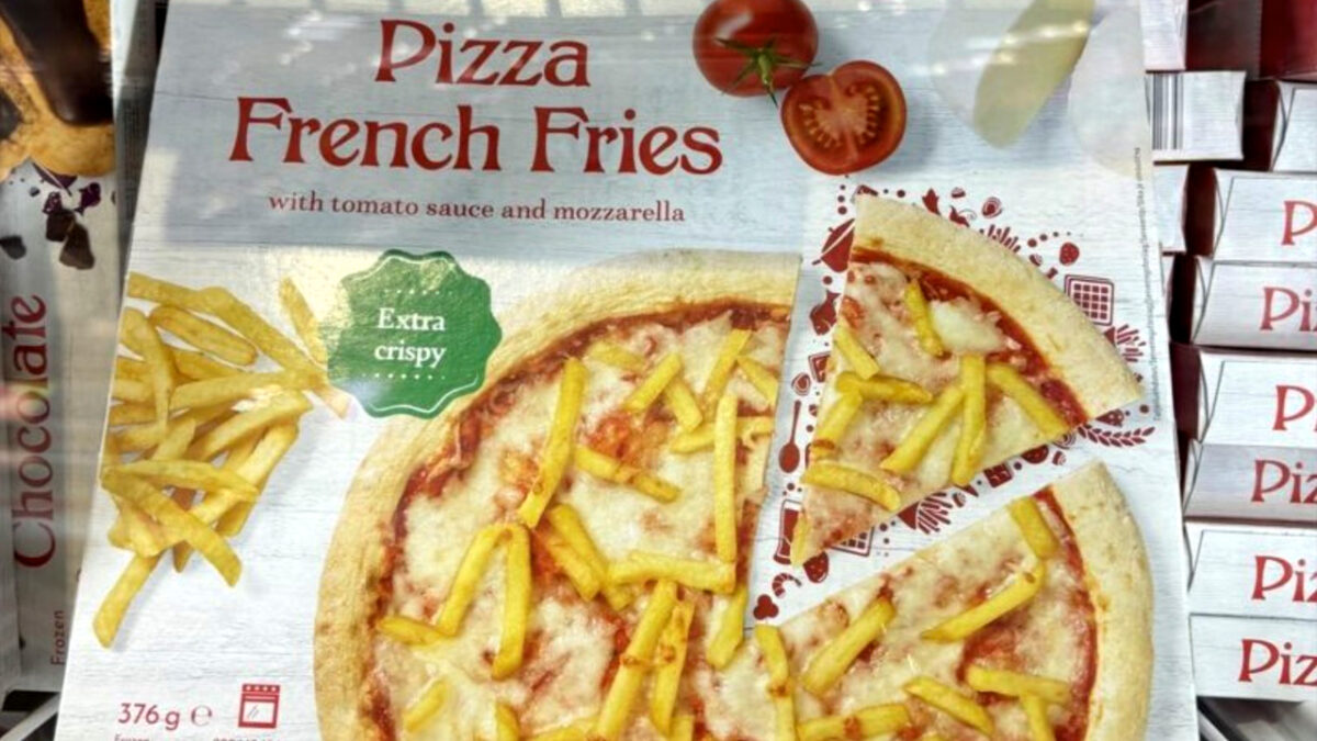 Vanaf gisteren zijn ze daadwerkelijk bij Lidl te koop: de pizza french fries. Ja inderdaad, een pizza met tomatensaus, mozzarella en een laag patat. Of friet, zoek het lekker uit.