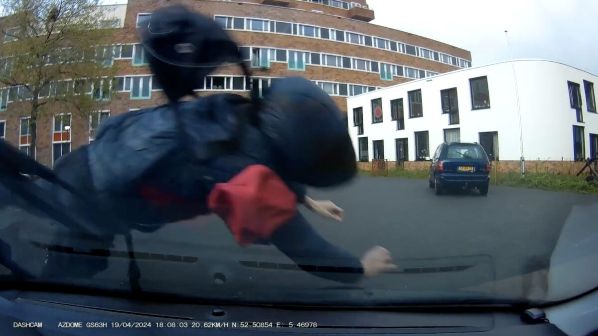 Capuchon op fatbike doet niet aan voorrang en rijdt vol tegen een auto aan