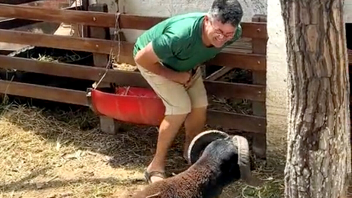 Braziliaan heeft aardig wat moeite om elke dag zijn agressieve ram te voeren Dieren