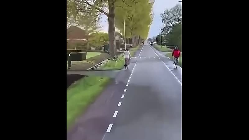 Als je nog niet zo heel lang op een fiets rijdt dan kan het best intimiderend overkomen als je door zo'n gigantische vrachtwagen wordt ingehaald. Deze vrouw is blijkbaar zo onder de indruk dat ze spontaan de sloot in rijdt.
