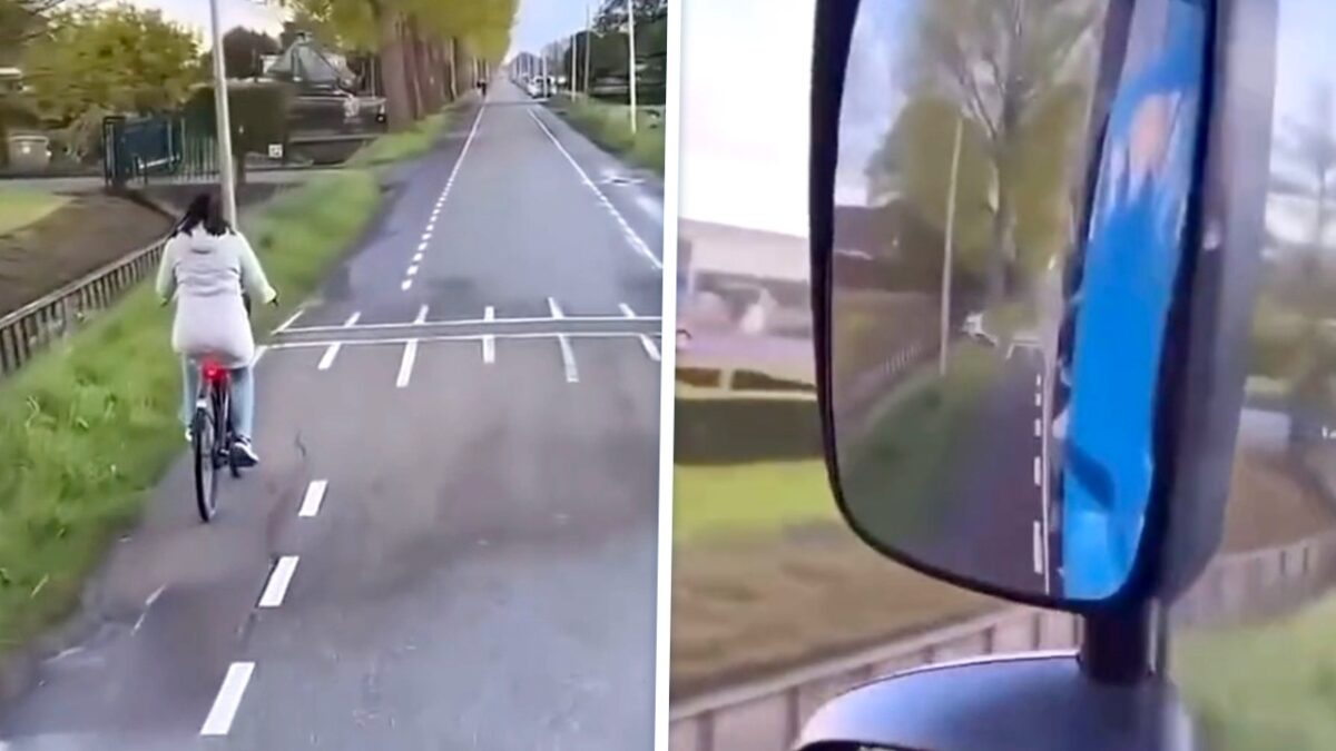 Fietser schrikt zich rot en rijdt de sloot in dankzij een filmende vrachtwagenchauffeur