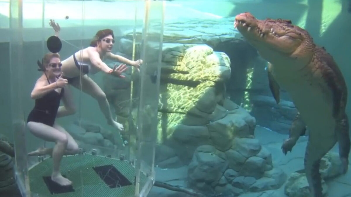 Dankzij deze glazen kooi kun je een stukje zwemmen met een krokodil