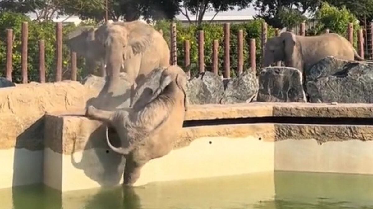 Al eens een olifant zijn evenwicht zien verliezen en in het water zien vallen? Dieren