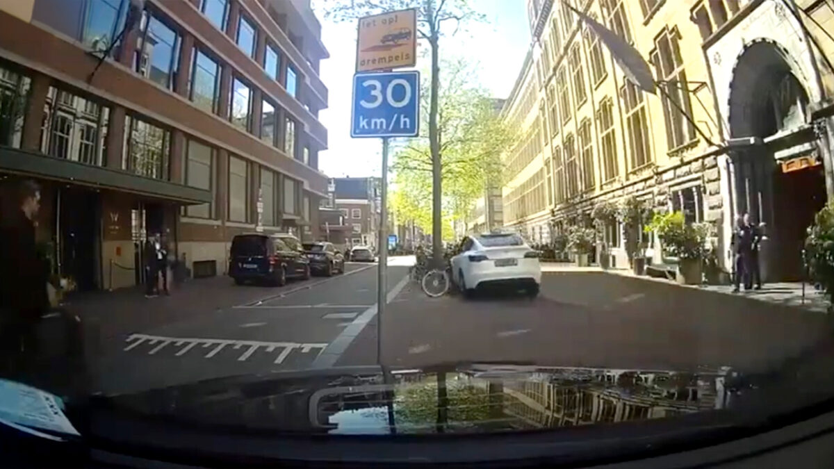 Een voetganger is op de stoep in de Amsterdamse Spuistraat door een taxi geraakt. De voetganger, net niet zichtbaar op de beelden, is met verwondingen naar het ziekenhuis gebracht.