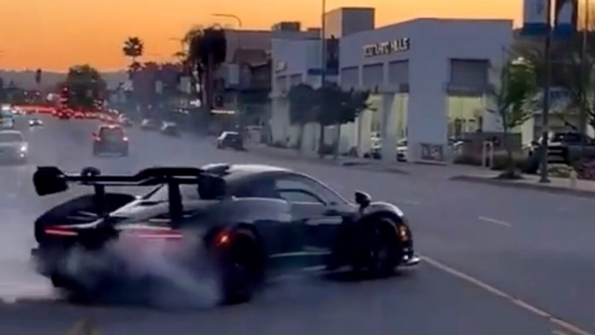 Eigenaar van peperdure McLaren Senna drift een showroom aan diggelen