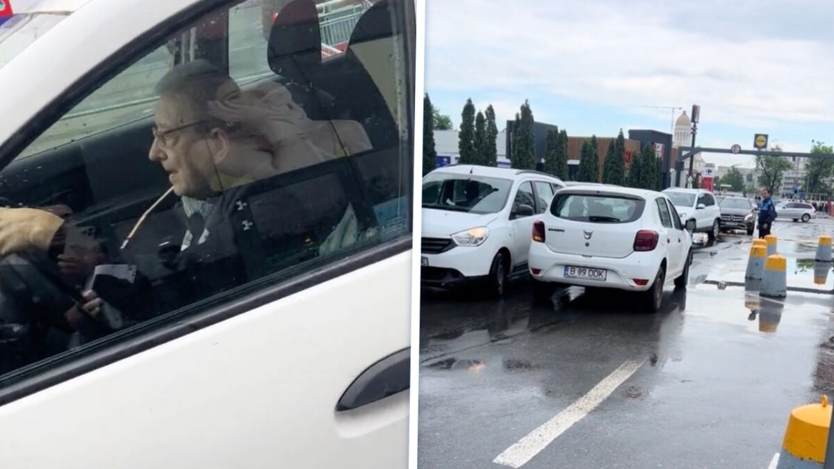 Opa en zijn naaimachine creëren chaos op de parkeerplaats van de lokale supermarkt