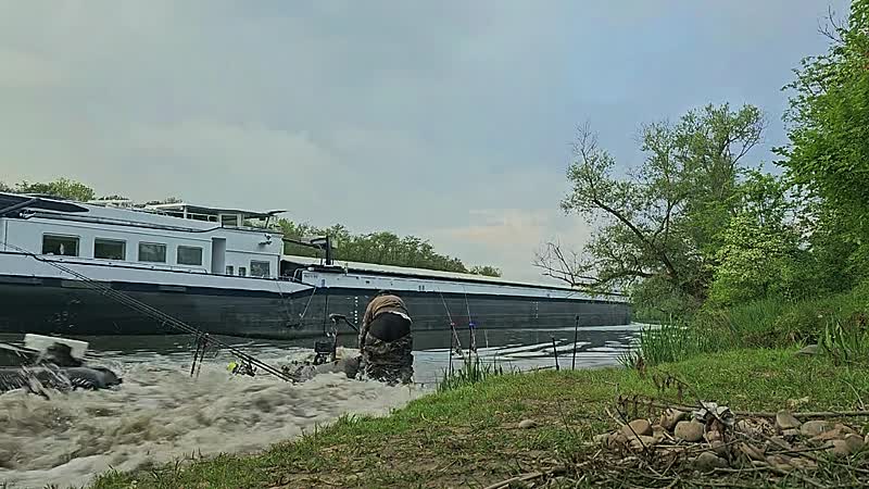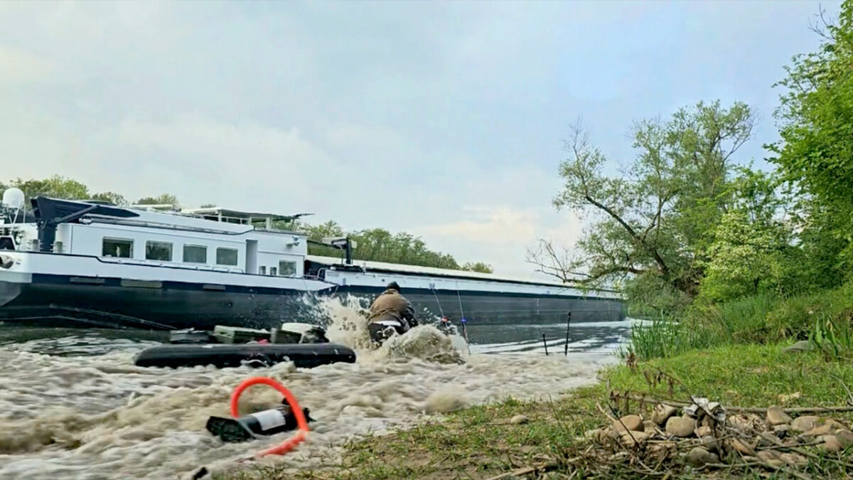 Een ontspannen middagje vissen viel in het water dankzij een passerend vrachtschip