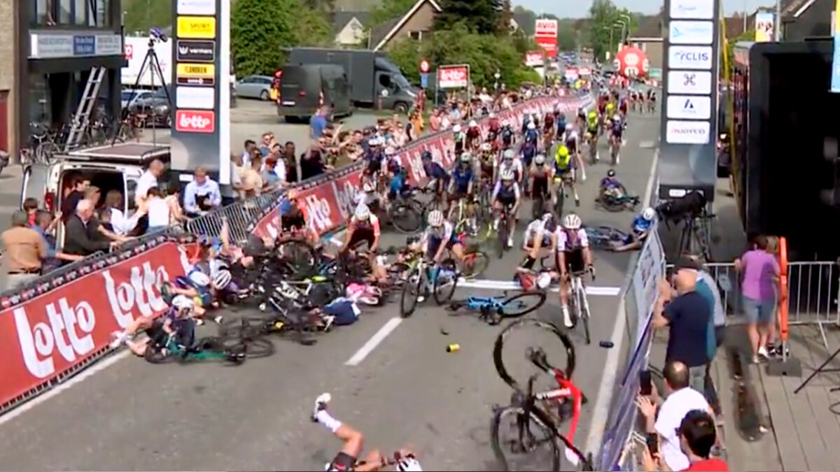 Best lullig; ben je 137 kilometer ongeschonden de hele race doorgekomen bij de allereerste editie van de Cyclis Bike Lease Classic, word je gevloerd dankzij een massale valpartij bij de finish in Hamme.