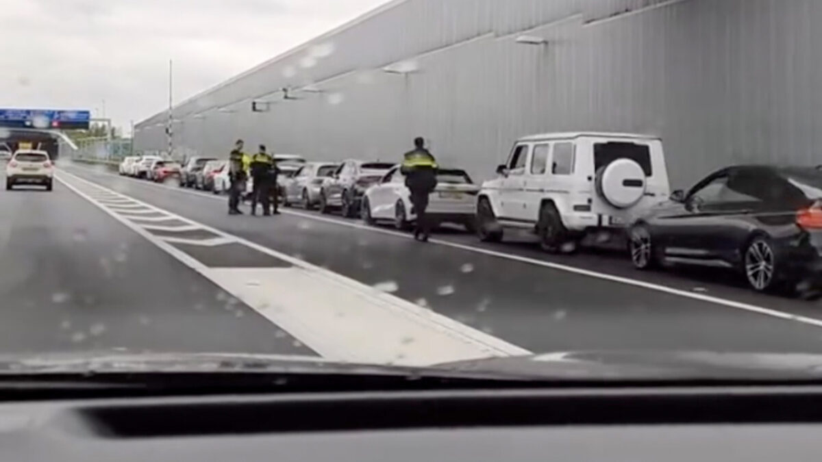 Politie zet complete trouwstoet aan de kant op de vluchtstrook van de A4