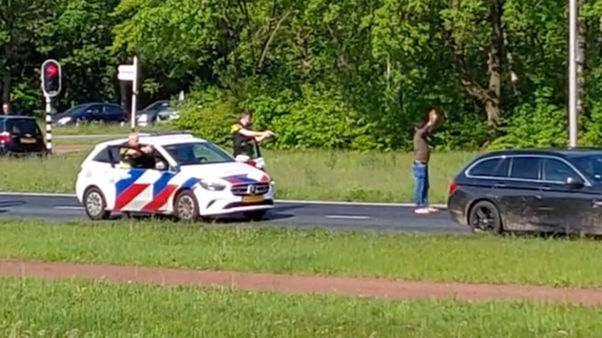 Visser uit het niets getuige van een aanhouding met getrokken wapens