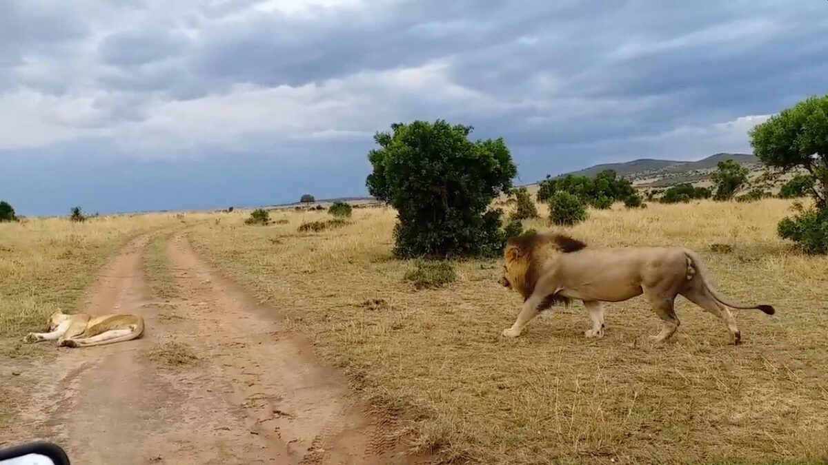 Koning van de jungle probeert zijn chagrijnige vrouw voorzichtig wakker te maken