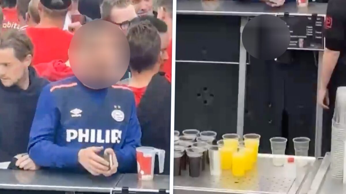 Deze man had geen zin om een Dixi te zoeken en liet de boel lopen bij de bar