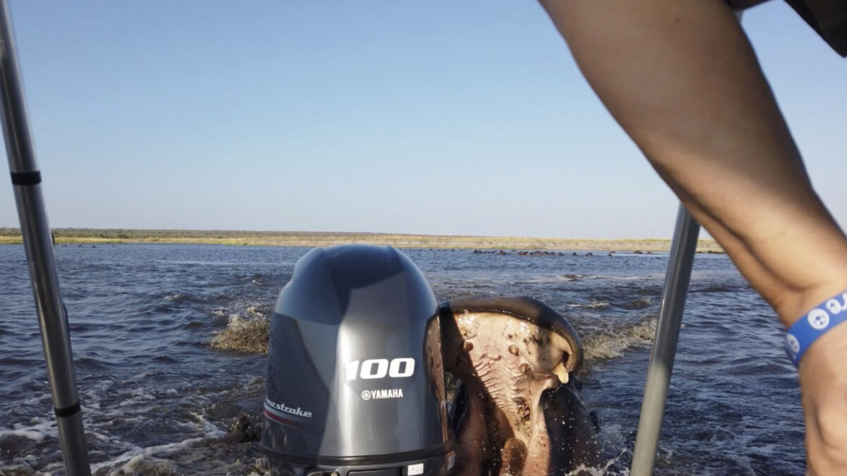Pislinke nijlpaard valt fotograaf aan tijdens boottocht in Namibia