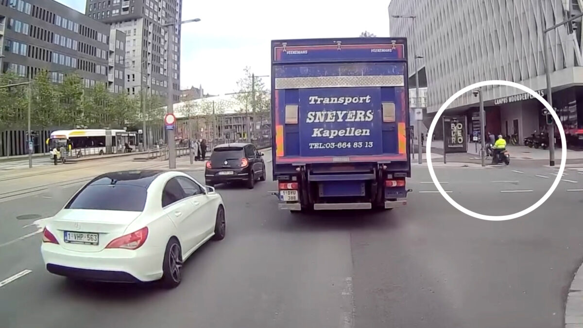 Scooter knalt over kruispunt en kan een fietser niet meer ontwijken Fails