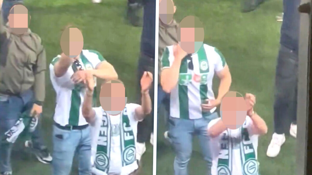 Gisteravond won FC Groningen met 2-0 van Roda JC waardoor ze na een jaar van afwezigheid terugkeren in de eredivisie. Voor de supporters natuurlijk een mooie aanleiding voor een feestje, maar deze "supporter" had blijkbaar de behoefte om een kansloos gebaar naar de tegenstanders te maken.