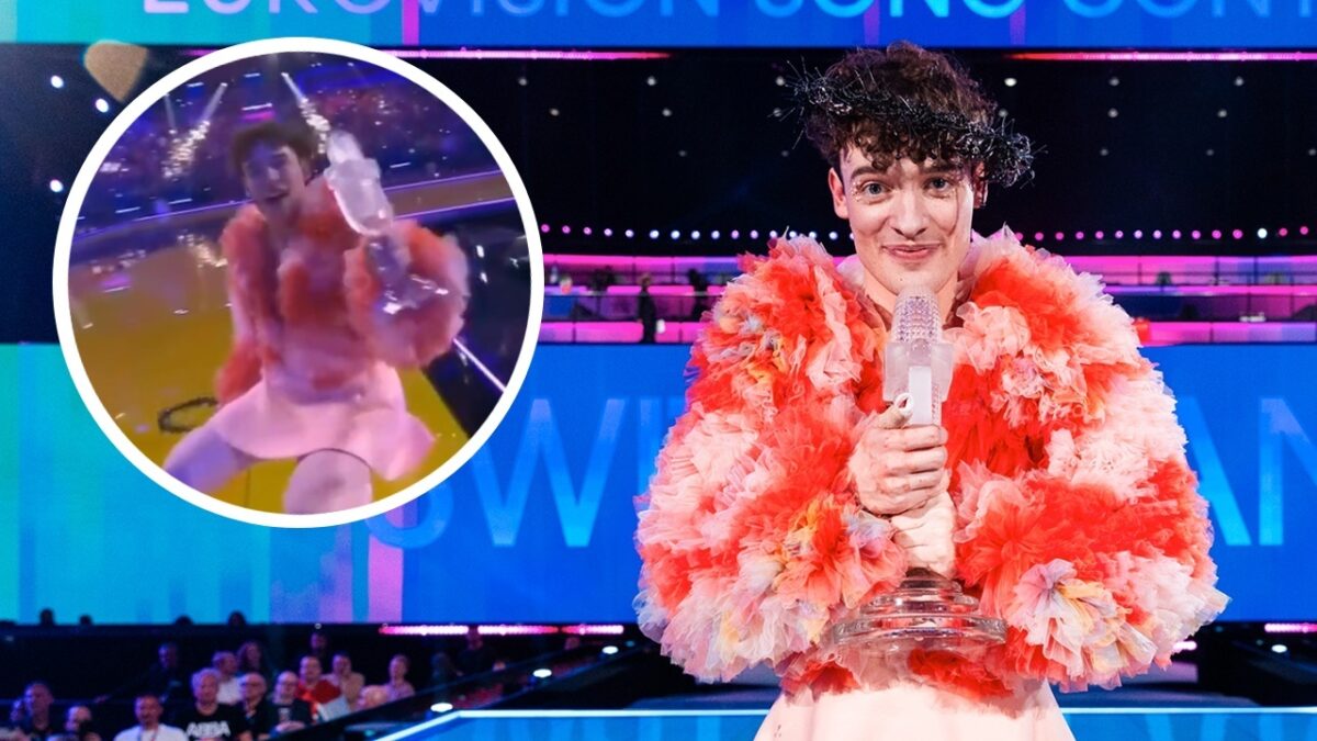 Festivalwinnaar Nemo breekt trofee (en waarschijnlijk ook een duim)