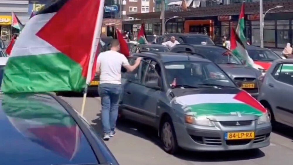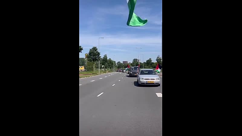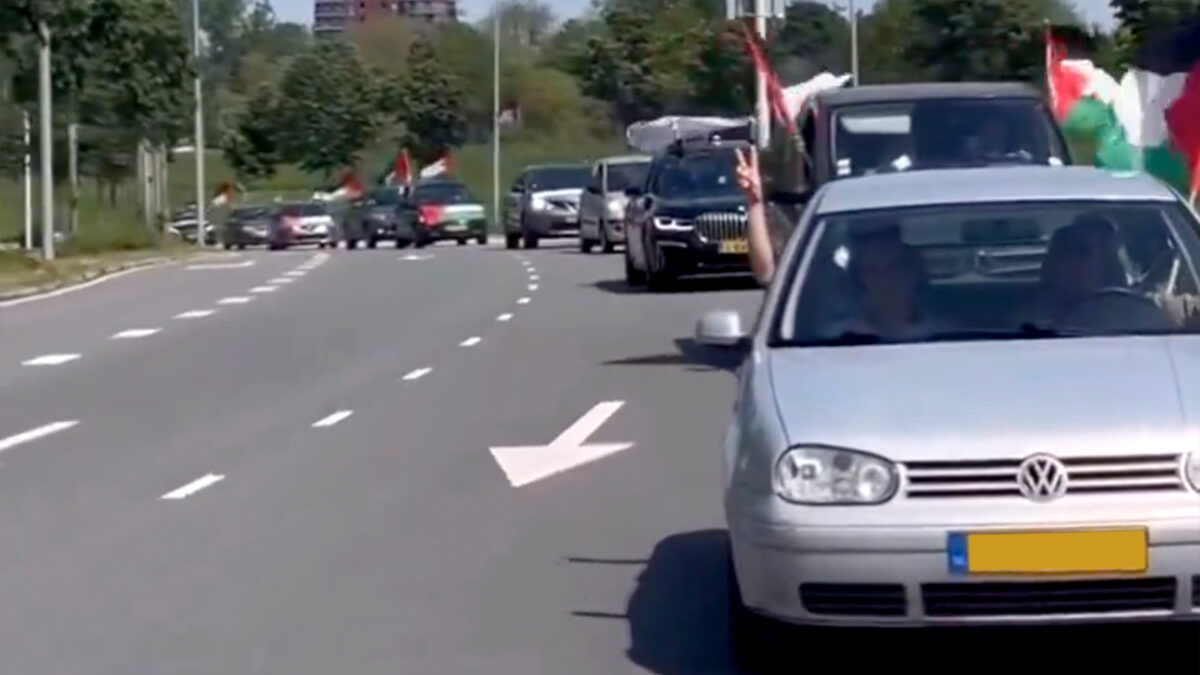 Vergezeld door muziek refererend aan de Hamas Al Qassam brigades (door EU aangemerkt als terreurgroep) en gedrapeerd in een hoofdtooi van diezelfde brigades bood het mooie weer vandaag de gelegenheid om met een autostoet vanaf plein '40-'45 in A'dam Nieuw-West door de stad te jakkeren.