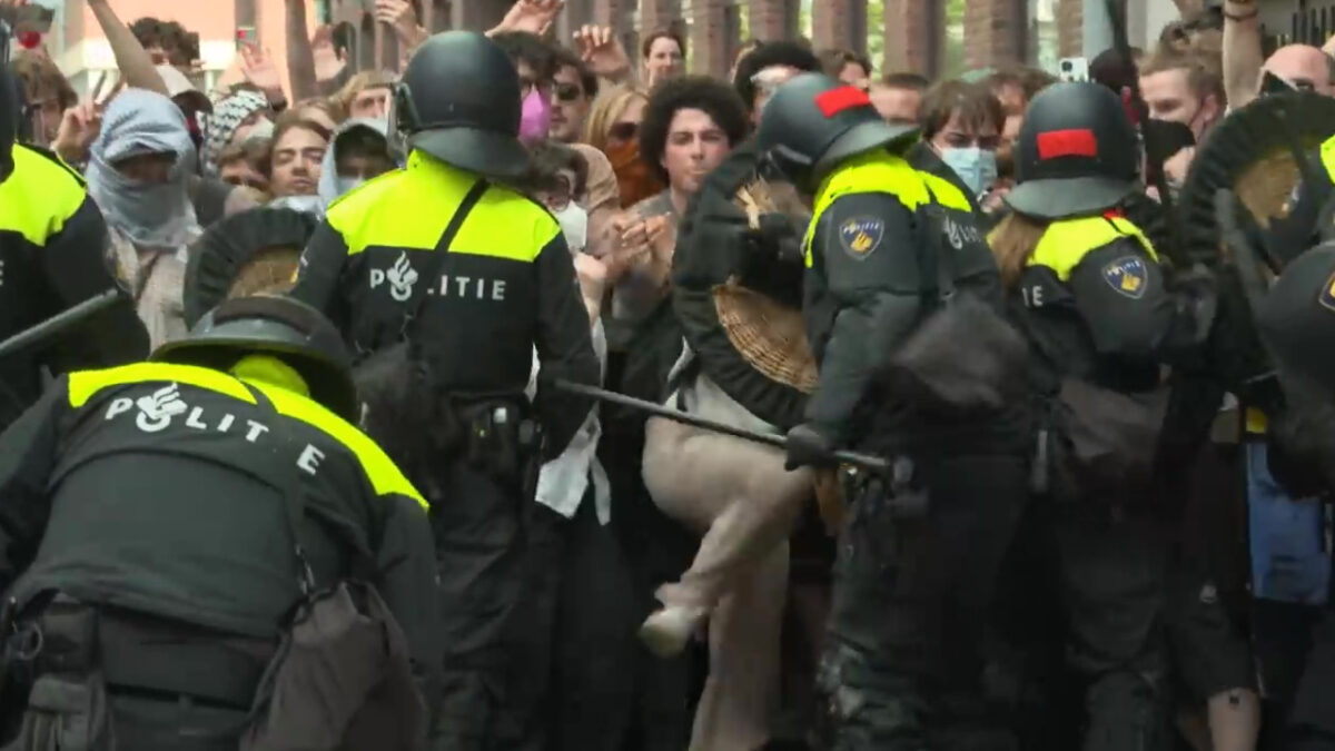 Het was weer raak gisteren. Niet alleen werd er geprotesteerd bij de UvA (en op vele andere universiteiten), maar ook vonden relschoppers het nodig om de hele handel te slopen. Niemand weet wat de koffiemachines en beeldschermen hadden misdaan, maar om de een of andere reden moesten die ook kapot. De volledige video kun je hier bekijken.